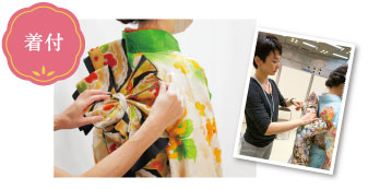 豊富な知識・経験そして技術力のあるスタッフがお嬢様に合わせた着付を行い、美しい着姿に整えます。また、振袖を着用していても着くずれしにくい、苦しくないということにも定評をいただいております。